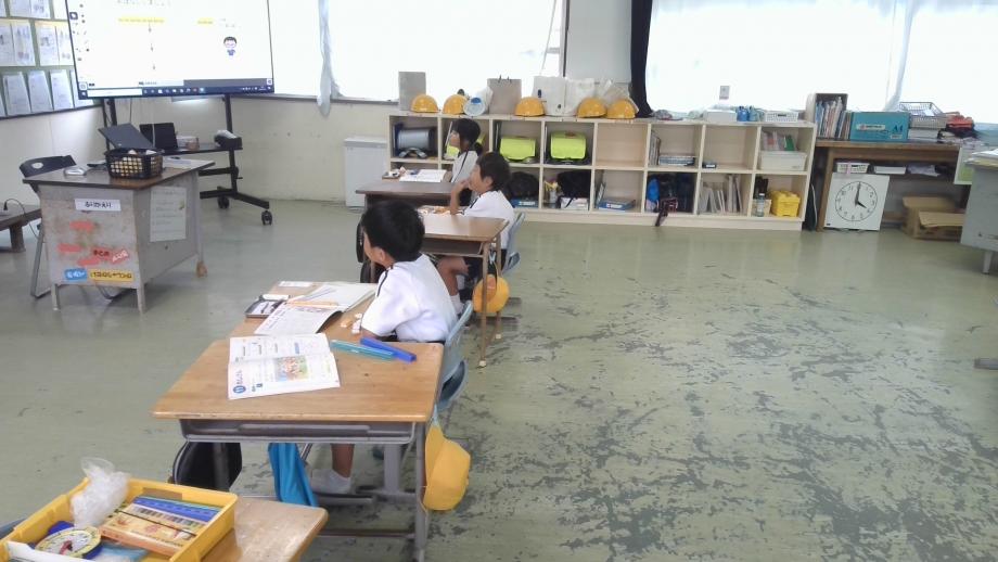 3・4年生は、算数科の授業でした。タブレット端末、教科書、プリント等を活用して、3年生は、円と球の学習、4年生は計算の工夫のまとめに取り組んでいました。