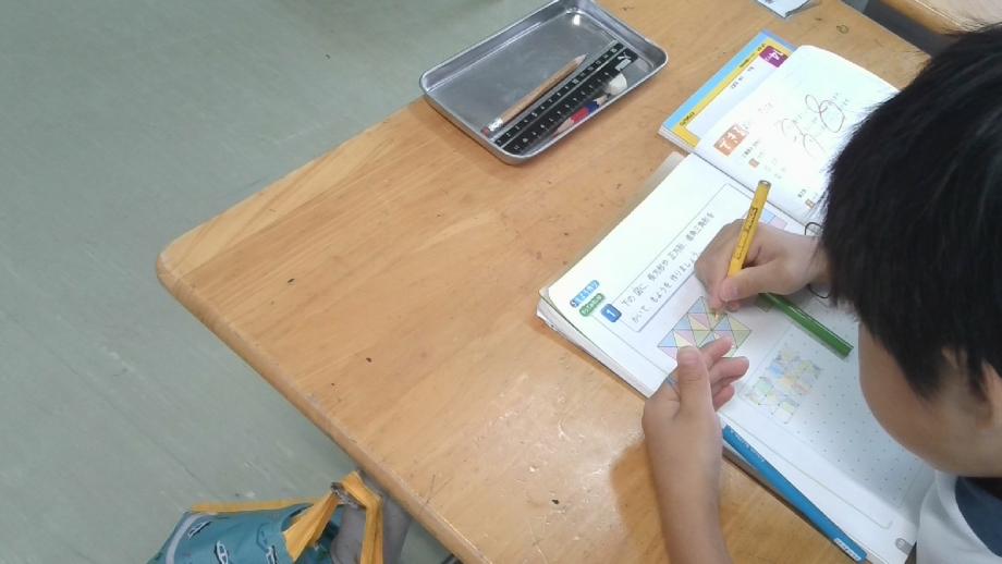 10月11日の授業の様子です。1・2年生は算数科の授業でした。1年生はくり上がりのあるたし算、2年生は三角形と四角形のまとめでした。