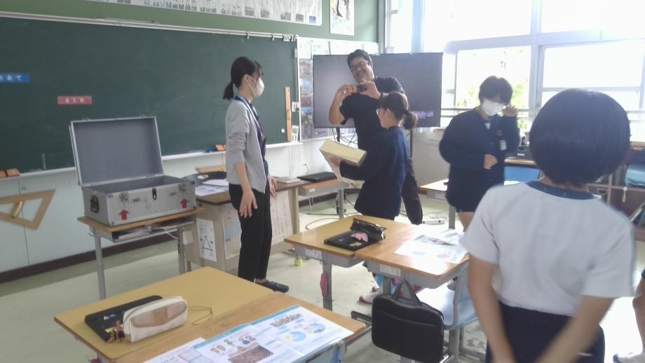 10月13日に5・6年生を対象とした租税教室がありました。垂水市役所税務課の職員の方々を講師として、身近な税(消費税、入湯税等)、垂水市の歳入・歳出、税金にかかるクイズ(どこの国の消費税が一番高いか。)等を通して、子供たちは税金の大切さを実感することができました。勉強してよかったこととして、「消防車や救急車にたくさんのお金がかかることを知れた」「社会科の勉強で税金について習っていたけど、今日の学習でもっと税のことを知ることができてよかった」等がありました。