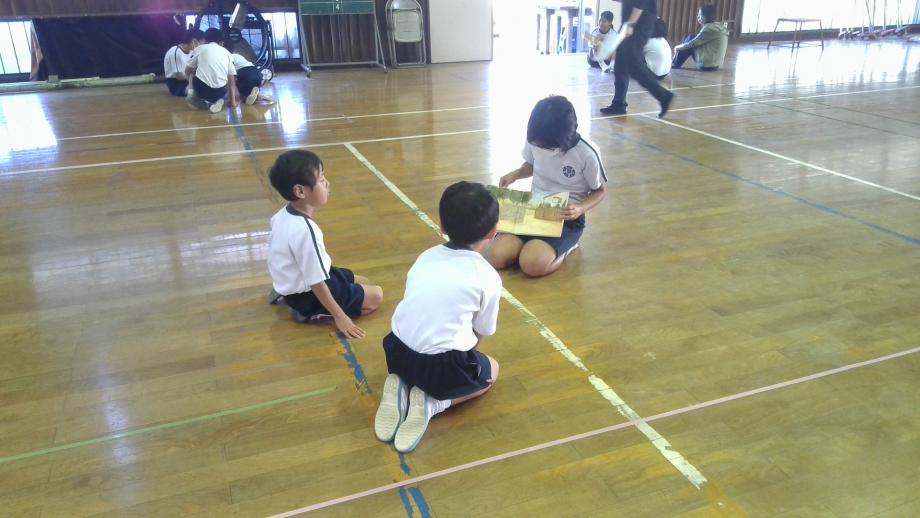 10月17日の児童集会は、体育館で高学年の子供たちが、1~4年生の子供たちに読み聞かせをしてくれました。高学年の子供たちは、低学年の子供たちの表情を見ながら読み聞かせに取り組むことができました。