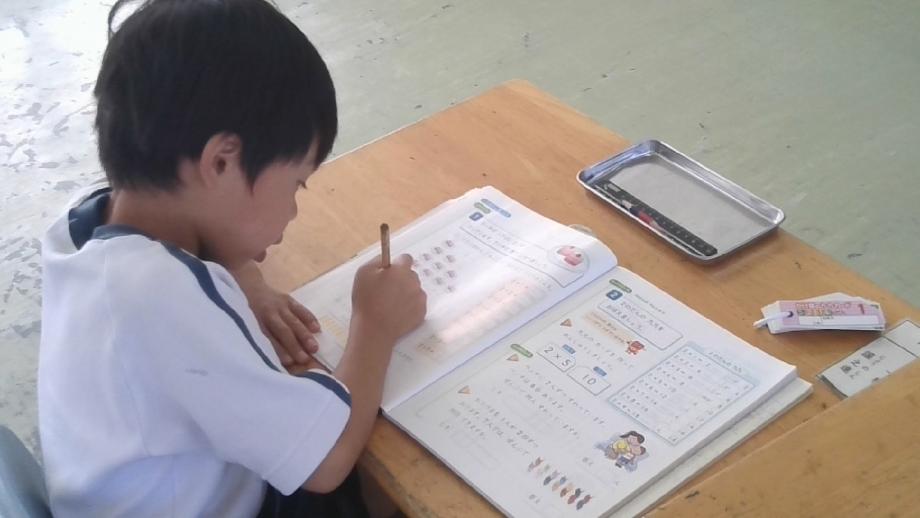 2年生は、かけ算の2の段の学習をしていました。教科書の絵に着目して、2の段の答えを導き出すことができました。