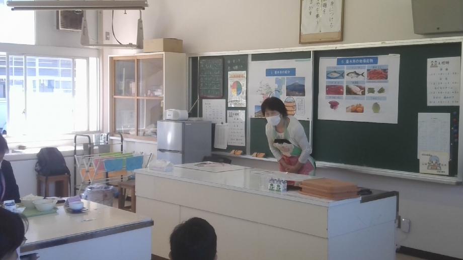 最初に給食センターの栄養教諭の先生から垂水市の地場産物の説明がありました。
