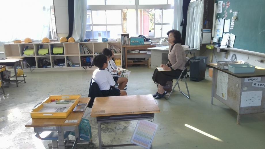 11月2日の子供たちの様子です。本日の朝の活動は、読書ボランティアの方々による読み聞かせでした。読書ボランティアの方のお子様が小学生のころに読んでいた本等の読み聞かせをしていただいたり、季節に合わせた本を読んだりしていただきました。