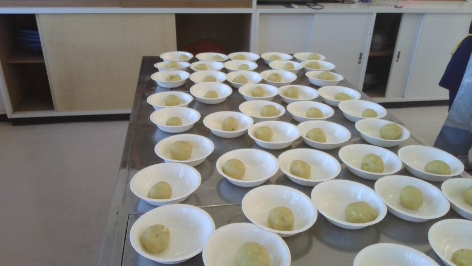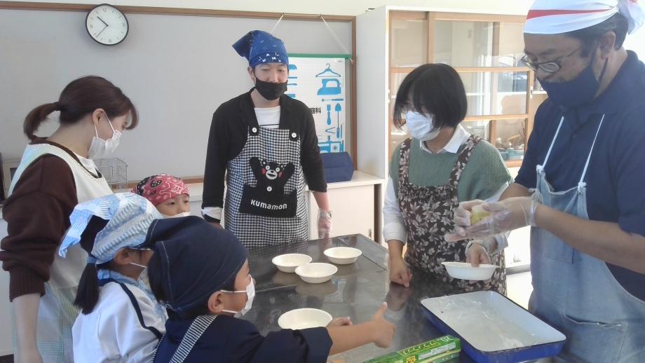 先生たちも子供たちと一緒に芋もち作りに取り組みました。
