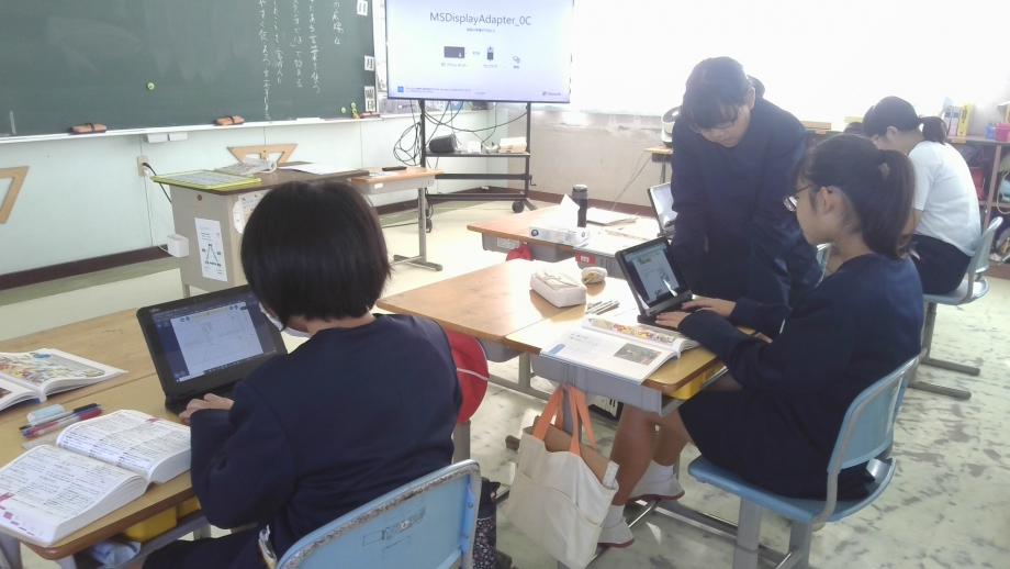 5・6年生は、国語の学習で漢字の広場の学習でタブレット端末と国語辞典を活用しながら学習に取り組めていました。