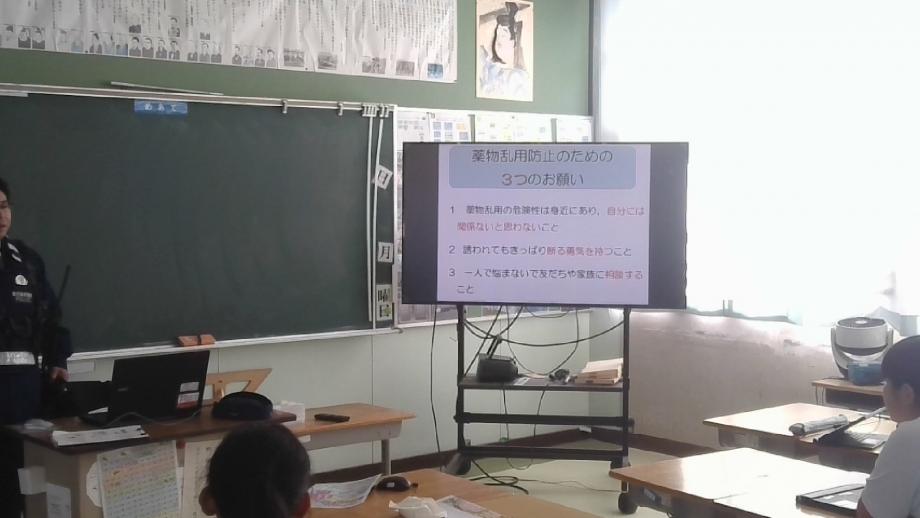 11月21日は、5・6年生の薬物乱用防止教室がありました。講師は、垂水市南駐在所の方でした。子供たちは乱用薬物、危険ドラッグが幻覚、幻聴等を引き起こすとともに、依存性があり、一回でも使うととても重い犯罪になることを学習しました。薬物乱用はダメゼッタイを学習することができ、とても有意義な時間となりました。