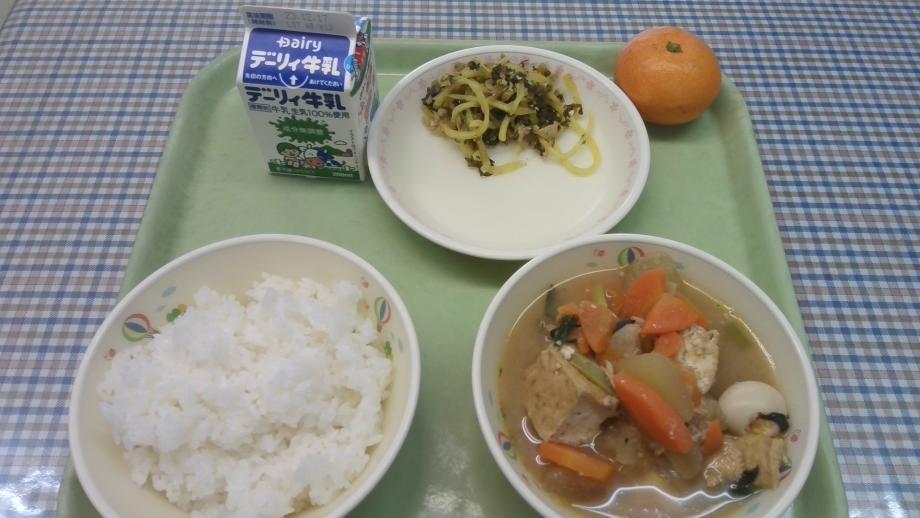12月5日の給食は、ごはん、とりにくととうがんのみそに、アンバナガナッシュ、みかんでした。12月21日の給食で、ケーキとフライドチキンが出される予定です。