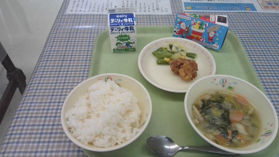 12月21日は、2学期最後の給食でした。メニューは、たるみずのごはん、とうがんのスープ、スナップえんどうソテー、フライドチキン、ケーキでした。ケーキは、子供たちは、自分の好きなケーキを選びました。また、12月20日の夕方に、地域の方より、風船で作った素敵なプレゼントをいただきました。本当にありがとうございました。22日は、2学期の終業式です。