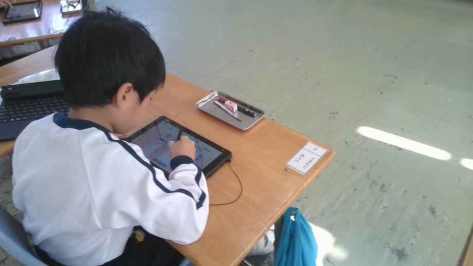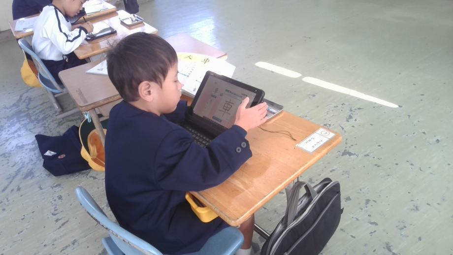 1年生は、タブレット端末を活用して漢字練習に取り組んでいました。1年生も、いろいろな教科でタブレット端末を活用して学習ができるようになっています。