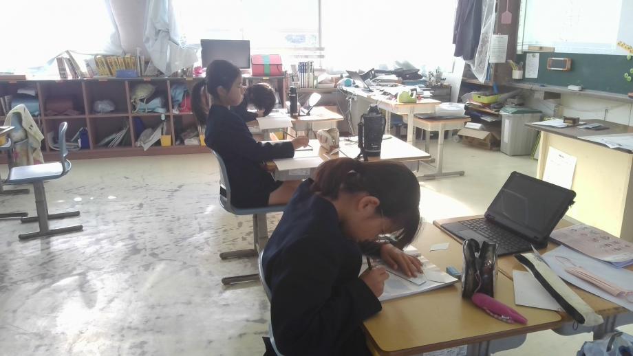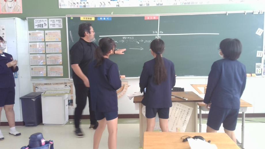 11月20日は、5年生は、算数で平行四辺形の面積の求め方の学習に取り組んでいました。平行四辺形のどこを切れば、4年生で学習した長方形の面積の求め方の考え方を活用できるか真剣に考えていました。6年生は算数で縮尺の考え方を使って問題を解いていました。長さの単位変換に悩みばがらも、友達と教え合いながら答えを導き出すことができていました。