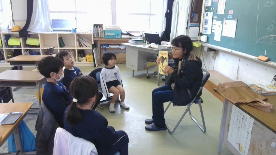 この後、本年度最後の読み聞かせをしていただきました。子供たちは、地域の読書ボランティアの方々の読み聞かせがとても大好きです。