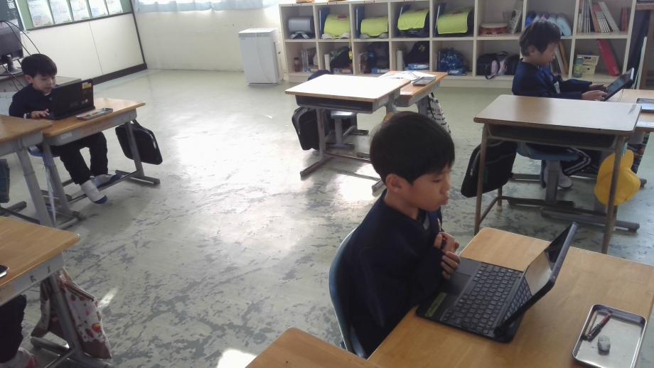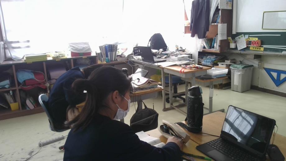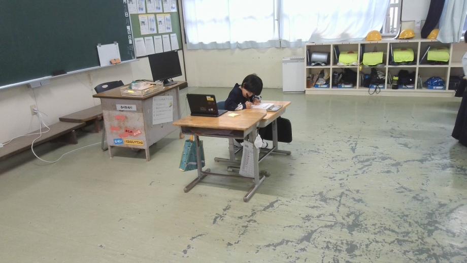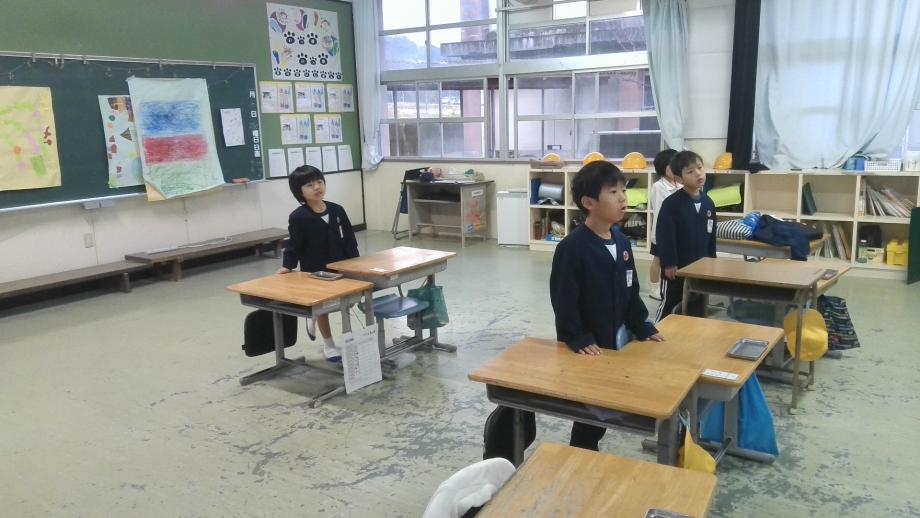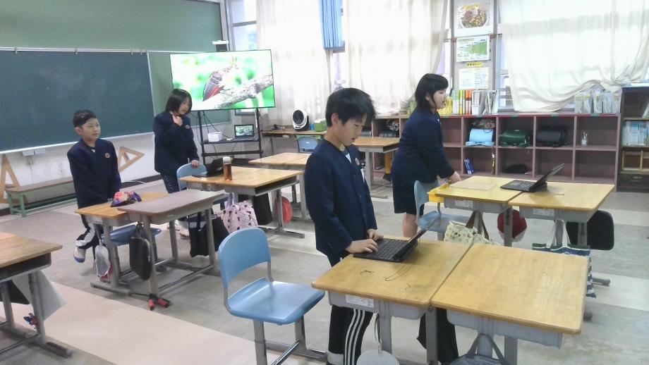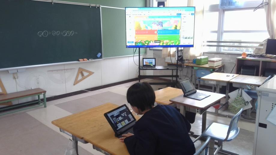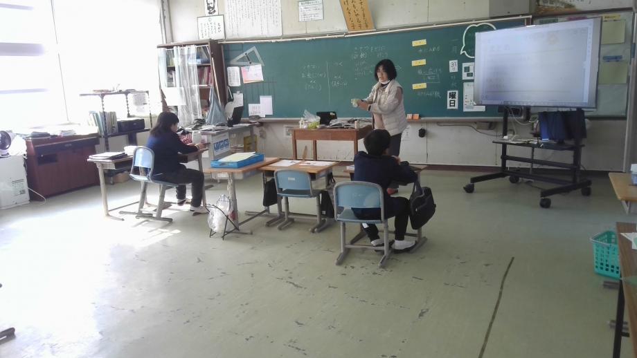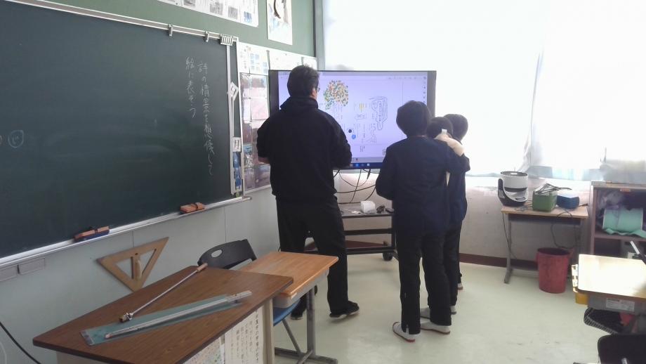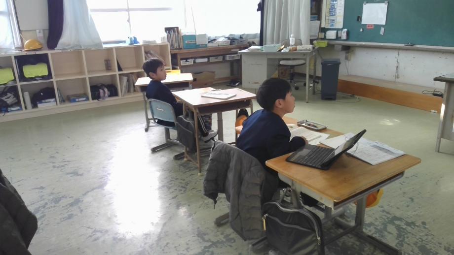 1月10日の朝の会の様子です。3学期がスタートして、2日目です。教室から元気な歌声が聞こえてきました。1時間目の授業は、3・4年生は算数でした。与えられた課題に自分から進んで取り組む姿が、2学期から継続していて、とてもうれしいです。5・6年生は、国語で詩の情景を絵に表していました。家庭学習は、詩の情景が思い浮かぶ朗読をして、タブレット端末に録画します。