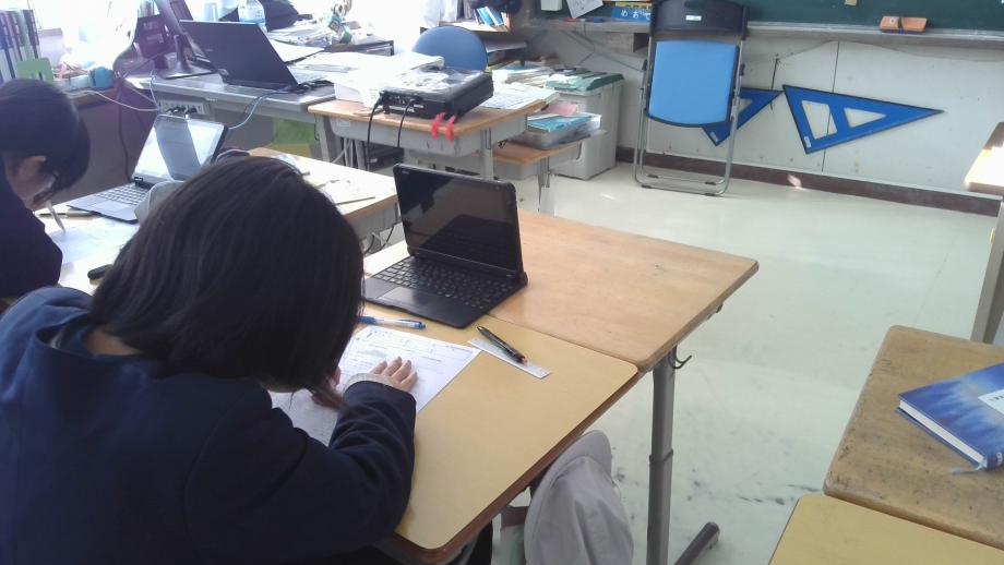 3月6日は、5年生は、社会科のまとめてストに取り組んでいました。