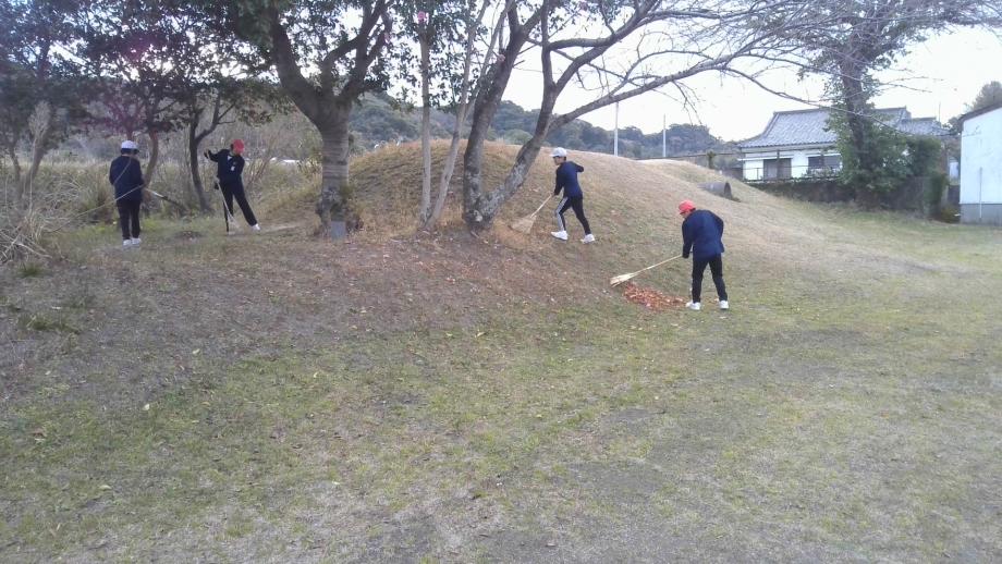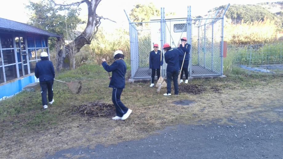 寒い朝でしたが、5・6年生が、落ち葉集め等、朝の自主活動に取り組んでいました。