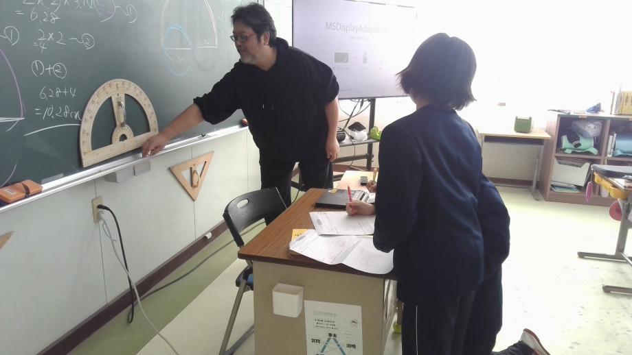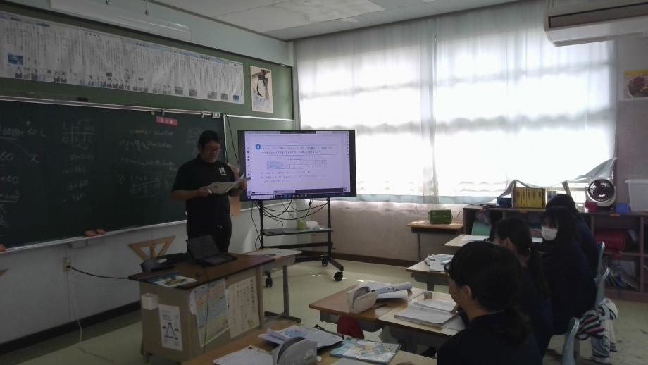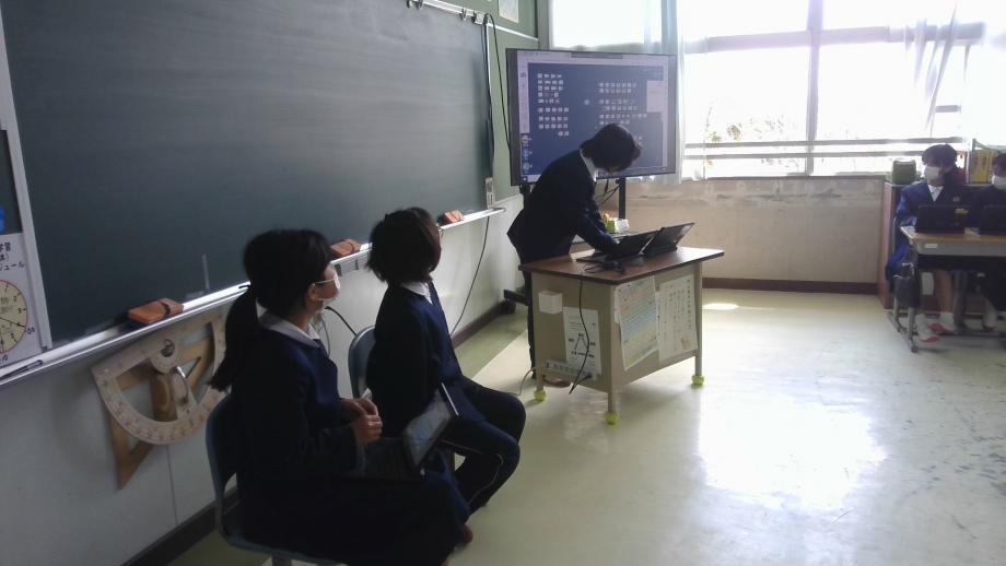 5・6年生は算数の授業でした。5年生は正多角形をかいたり、円のまわりの角度からどんな正多角形がかけるかをまとめていました。6年生は、単元テストに向け、プリントを活用して、復習に取り組んでいました