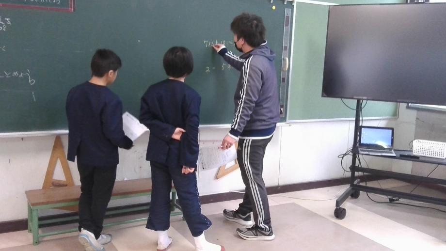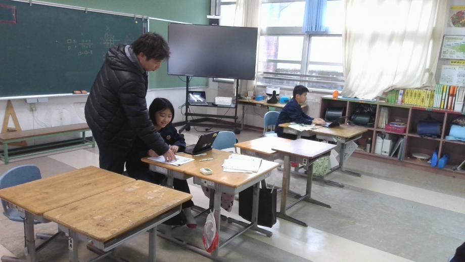 2月2日の授業の様子です。4年生は、算数の学習のまとめで、プリントを活用して、先生のアドバイスを受けながら学習に取り組んでいました。