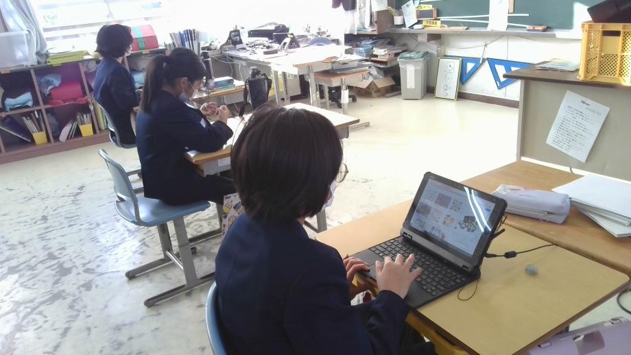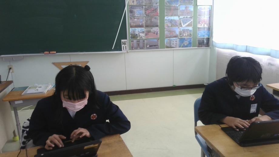 2月21日の5年生の国語の授業の様子です。タブレット端末を活用して、協力しながら学習に取り組んでいました。