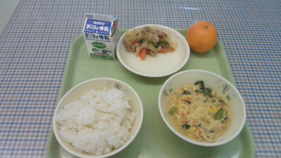 2月8日の給食のメニューは、むぎごはん、ホイコロー、ちゅうかふうコーンスープ、ぽんかん、牛乳でした。