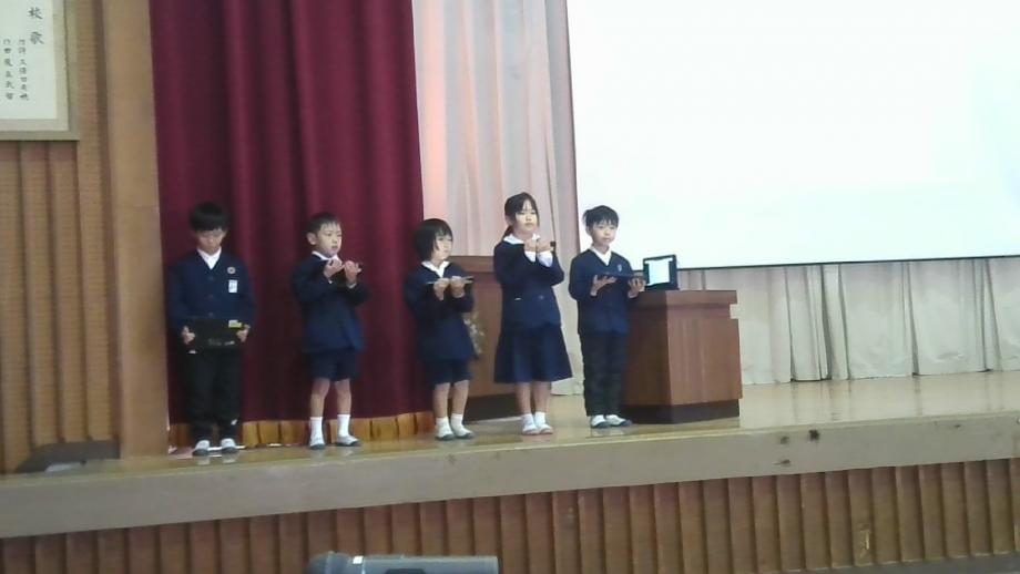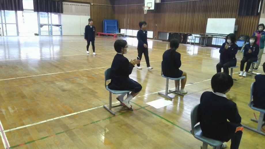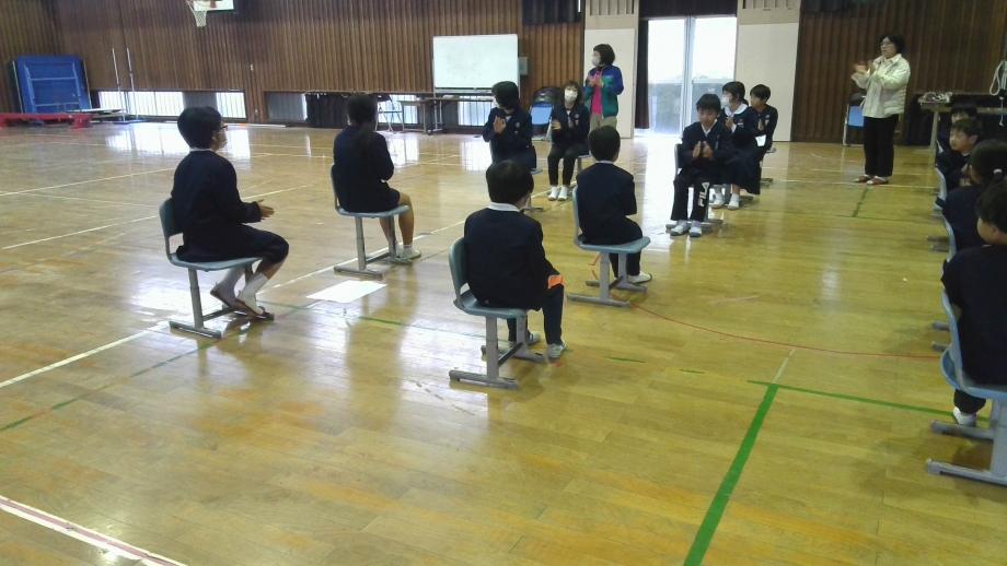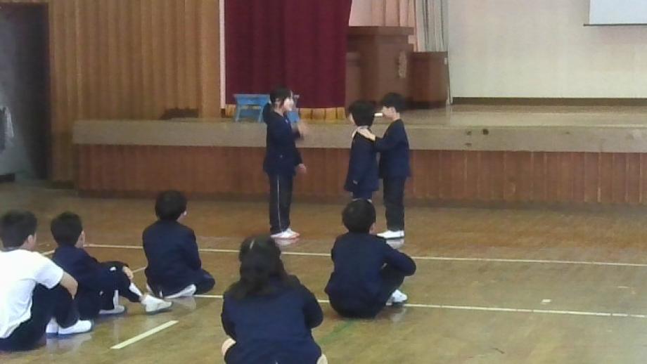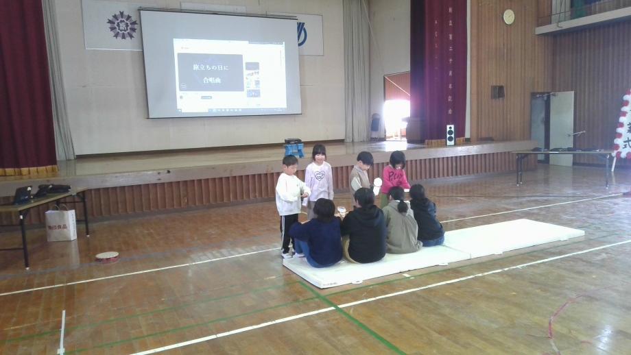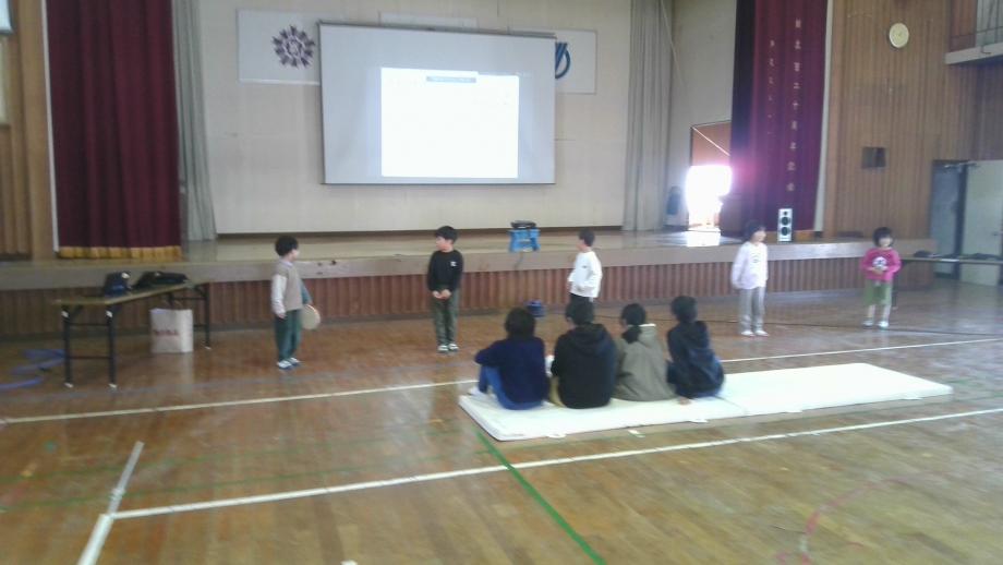 2月20日の朝の活動は、仲良し音楽でした。1・2年生の発表でした。全校児童を巻き込んだジャンケンゲームも楽しくできていました。