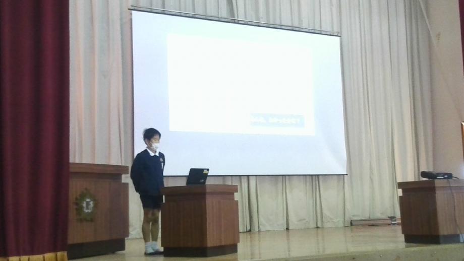 2月16日の朝の活動は、児童代表・保健委員会でした。20日の児童総会に向けて、発表のリハーサルに取り組んでいました。