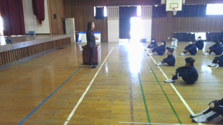 2月13日の全校朝会は、学校主事の先生と事務職員の先生の話でした。学校主事の先生は、自分のふるさとについての話をしてくださいました。事務職員の先生は、子供たちを喜ばせる手品を披露してくださいました。