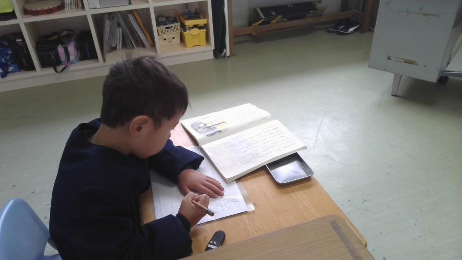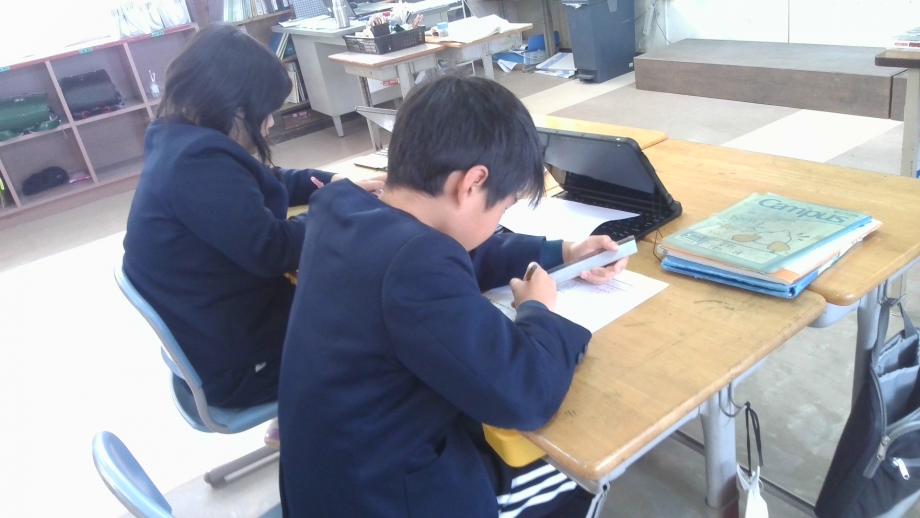 5・6年生は、国語の時間でした。5年生は、漢字の広場の学習で、これまで学習した漢字を使って、道案内の短い文章を書いていました。