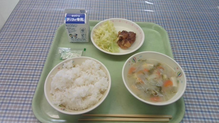 2月16日の給食のメニューは、むぎごはん、かぶのみそしる、チキンなんばん、ボイルキャベツ、L&Mマヨネーズでした。