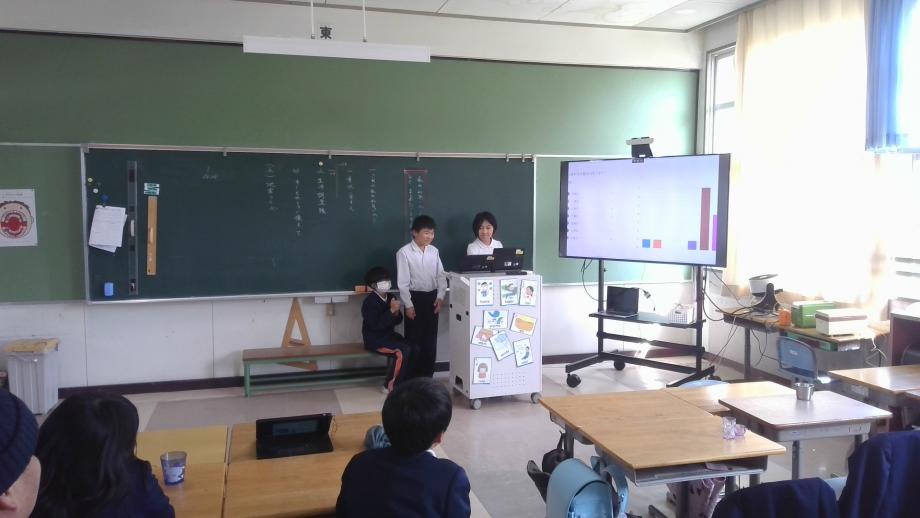 2月20日は、児童総会がありました。みんなで遊ぶ日についての話合いでした。議題について話し合ったことを記録係の子供が、ロイロノートですばやくまとめ、全員で共有しながら進めることができました。