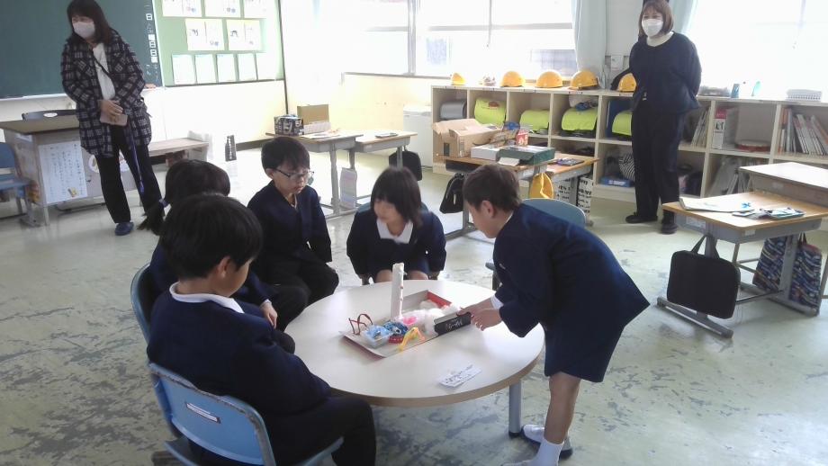 2月7日の授業の様子です。1・2年生は、10日のふるさと垂水・生活科発表会に向けて、発表の練習に取り組んだり、おもちゃのブロックを組み合わせたりしていました。おもちゃのブロックを組み合わせる活動は、本校が3年生以上の総合的な学習の時間において取り組んでいるふるさと垂水の景観の学習を表現する手段として活用している教育版マインクラフトで、建物を作る際に必要とされる空間認知の力を培うために取り組んでいるものです。