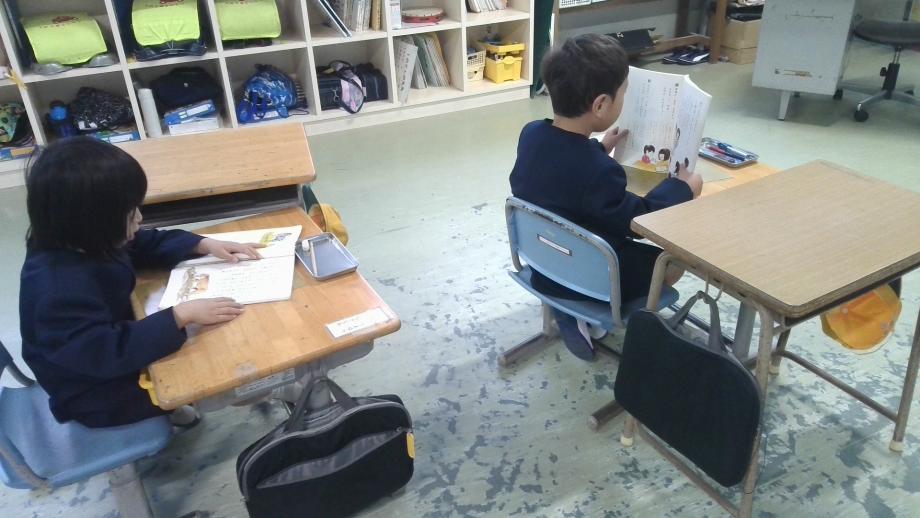 1・2年生は国語の授業でした。1月29日の研究授業に向けて、がんばっています。1年生は、どうぶつの赤ちゃん、2年生は、おにごっこの学習です。1年生は、文章を読み進めていく上で大切な言葉を先生と確認しながら、元気に音読ができています。2年生は、単元の学習計画を立て、単元の学習の見通しがもてていて、とても感心しました。