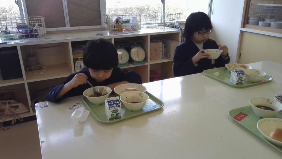 3月19日は、お別れ給食がありました。校長室で、学校長と、卒業生、3月末で本校を転出する子供とのお別れ給食でした。卒業までいよいよ残すところ1日となりました。みんなで笑顔いっぱいの給食となりました。卒業式は、22日(金曜日)です。